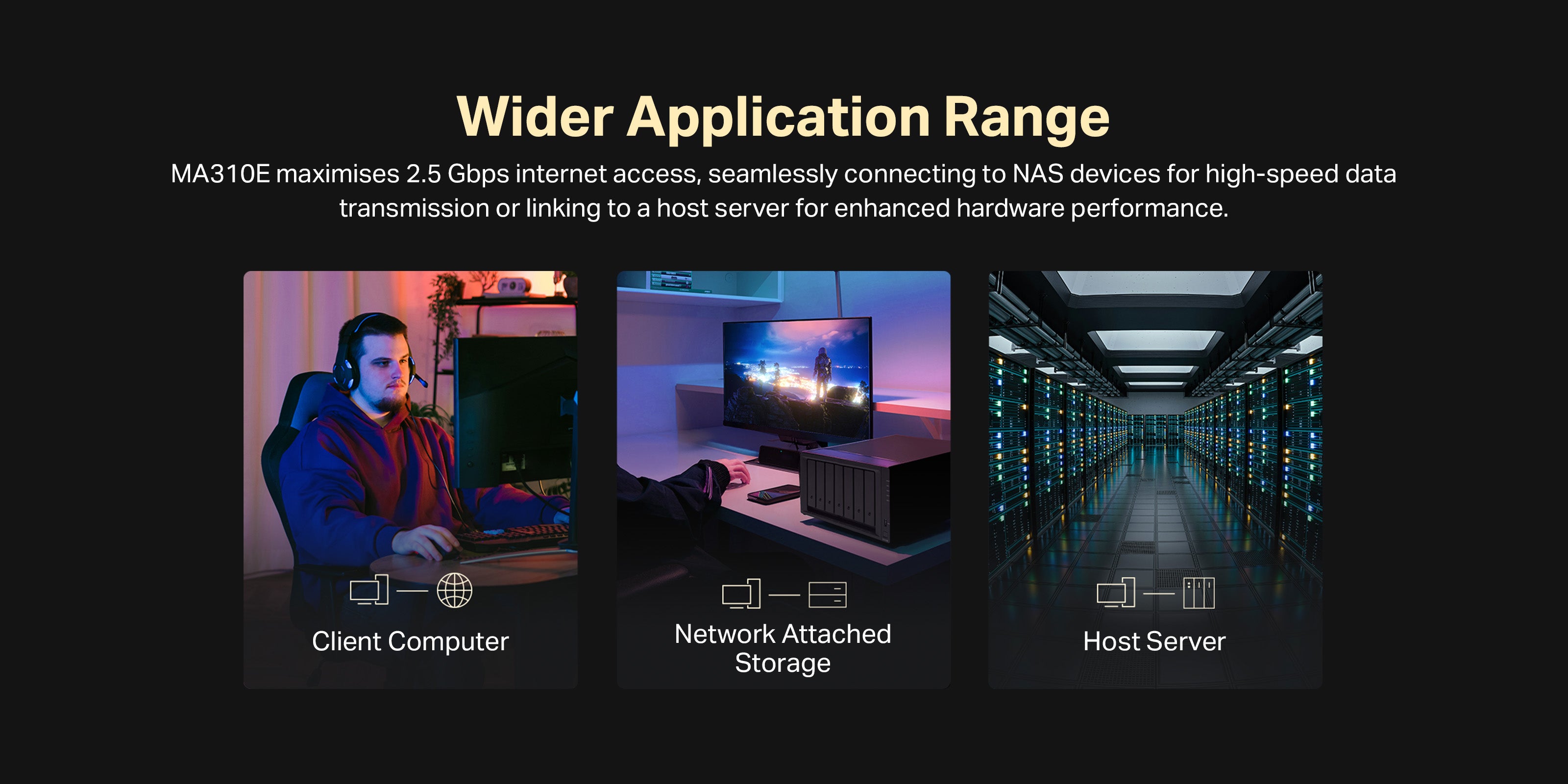 Share Files in Seconds — MA310E fully utilises your 2.5 Gbps internet access and can seamlessly connect to NAS devices for high-speed local data transmission.