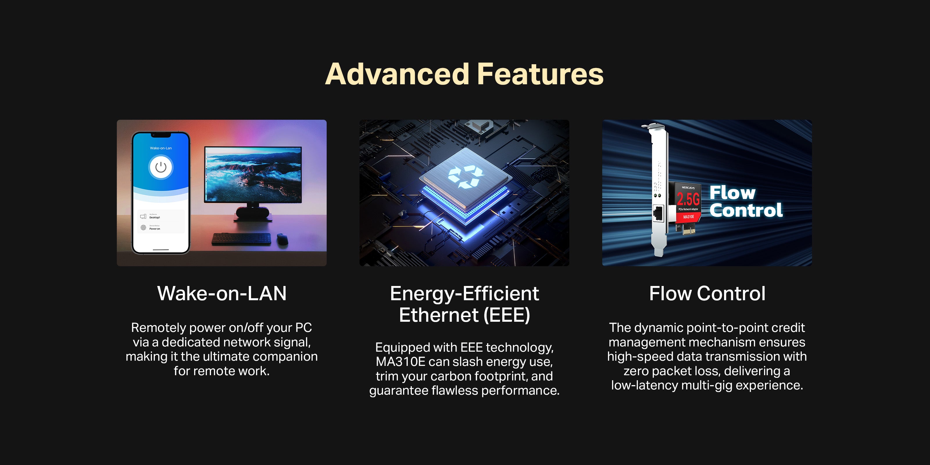 Wake-on-LAN — Remotely power on/off your PC via a dedicated network signal, making it the ultimate companion for remote work.
