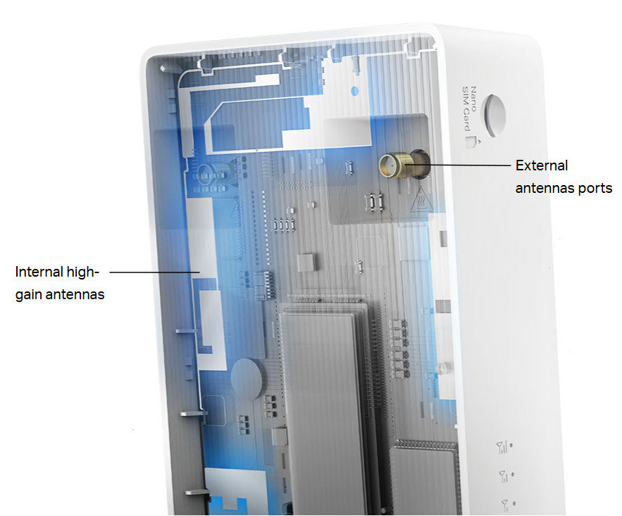 Internal high-gain antennas strengthen the Wi-Fi signal, extend the range of connection establishment, and boost the sensitivity of the router. Additionally, by connecting your extra 4G antennas to the external antenna ports, you may further strengthen the signal.