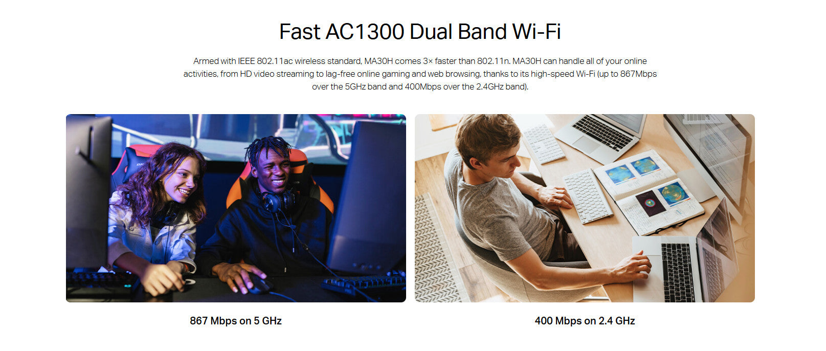 - Strong Dual Band Wi-Fi Speed: Speeds up to 867 Mbps (5 GHz) + 400 Mbps (2.4 GHz). 1