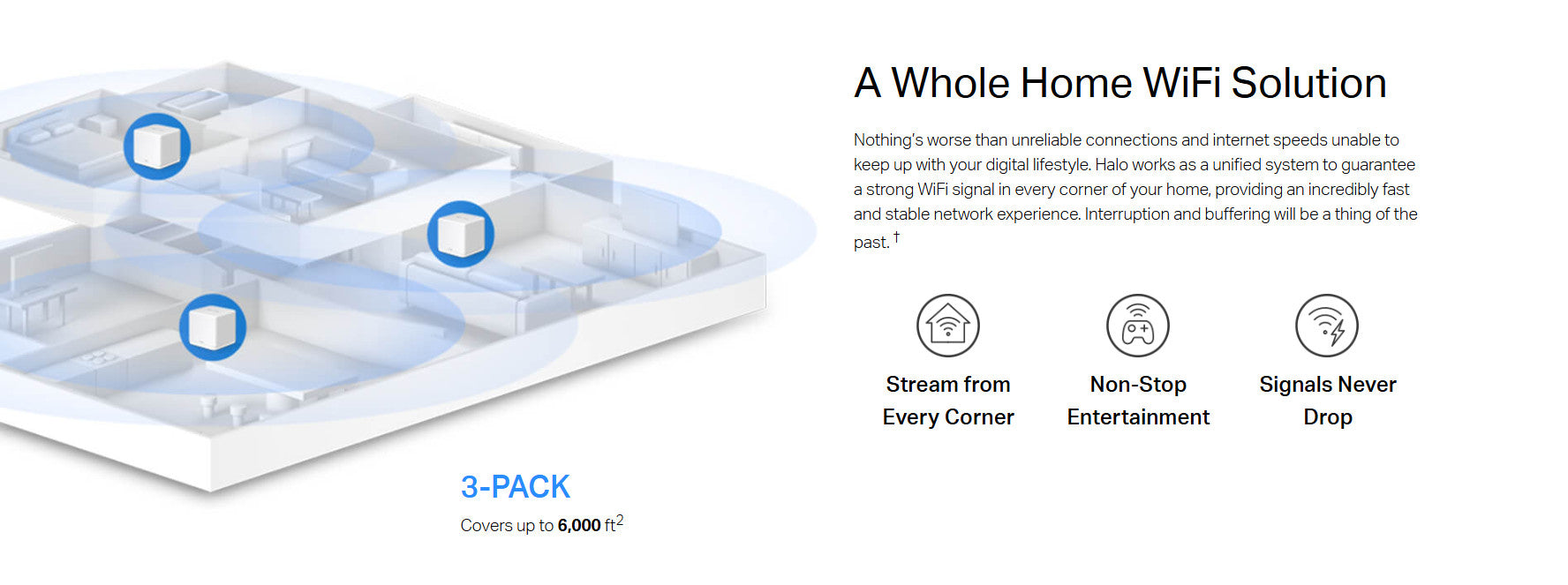 - Seamless Roaming with One Unified Network: Halo units work together to automatically switch between Halos as you move around your home with a single unified Wi-Fi name and password. ‡
