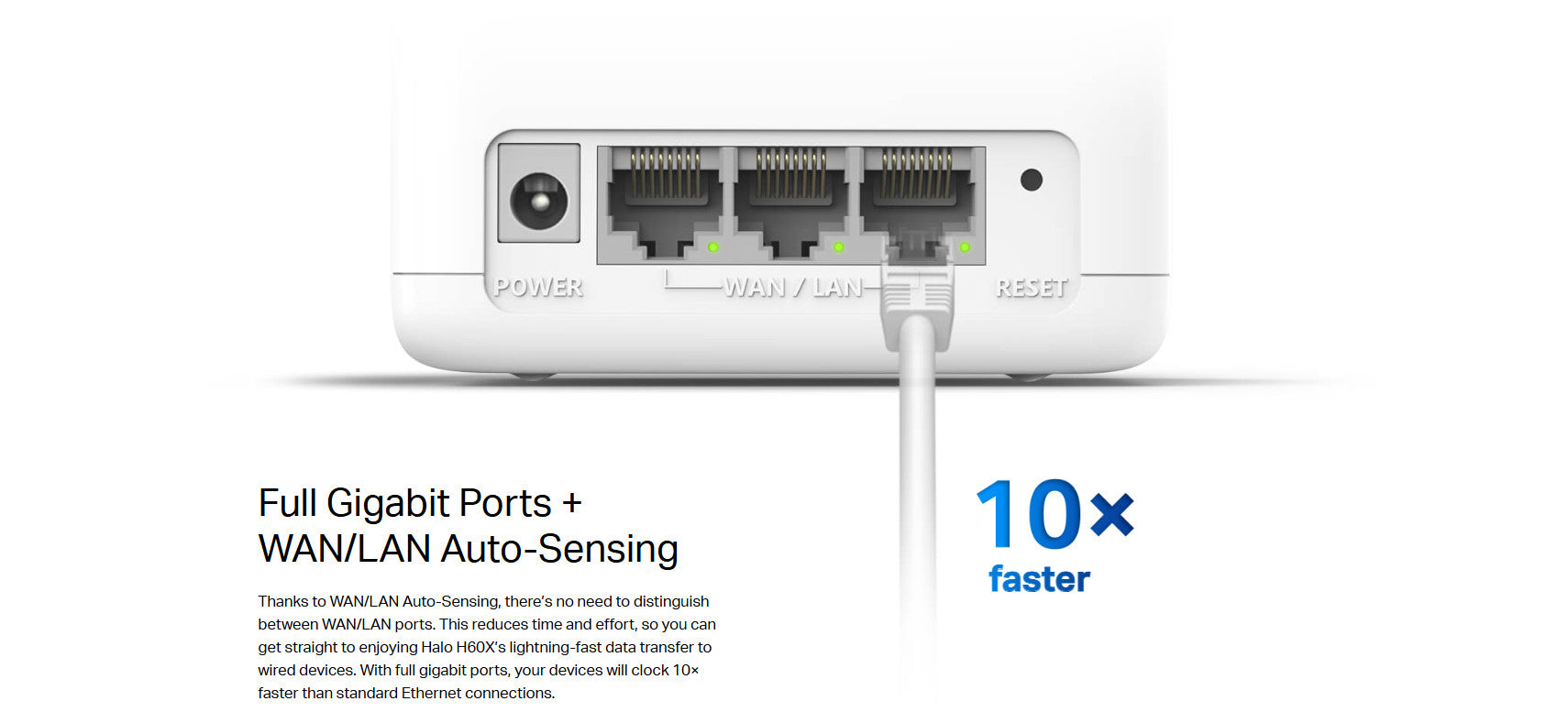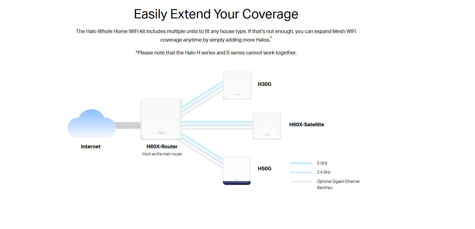 *Please note that the Halo H series and S series cannot work together. Halo H60X is compatible with other units from the Halo H series to form a Mesh network.**All WAN/L AN ports will operate as either WAN or LAN ports. Only one port can serve as a WAN port at a time.