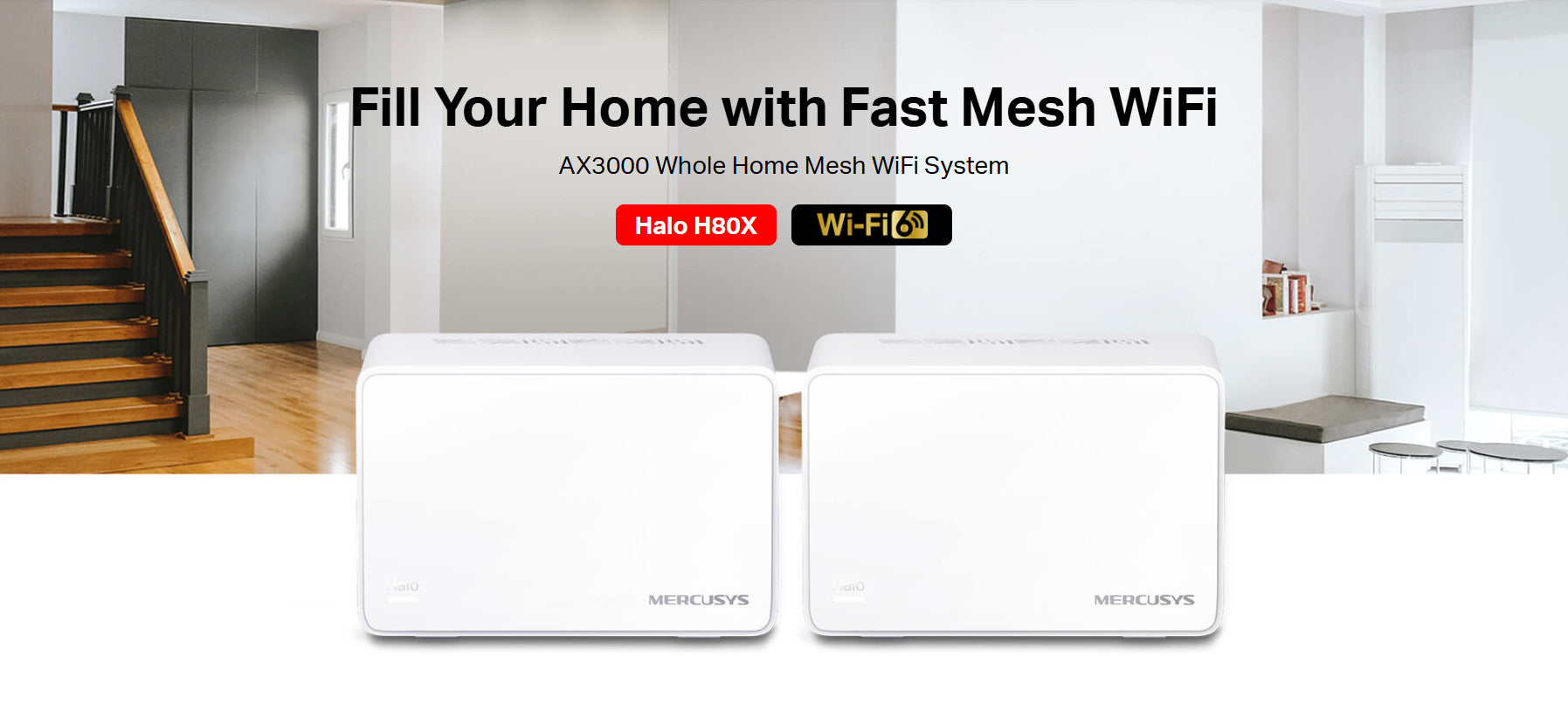 AX3000 Whole Home Mesh Wi-Fi 6 System, Halo H80X(2-Pack)