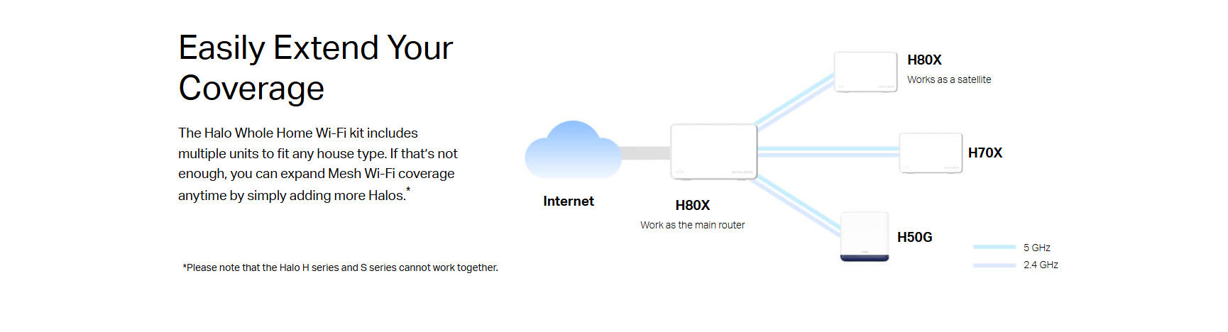 *Please note that the Halo H series and S series cannot work together. Halo H80X is compatible with other units from the Halo H series to form a Mesh network.**All WAN/L AN ports will operate as either WAN or LAN ports. Only one port can serve as a WAN port at a time.