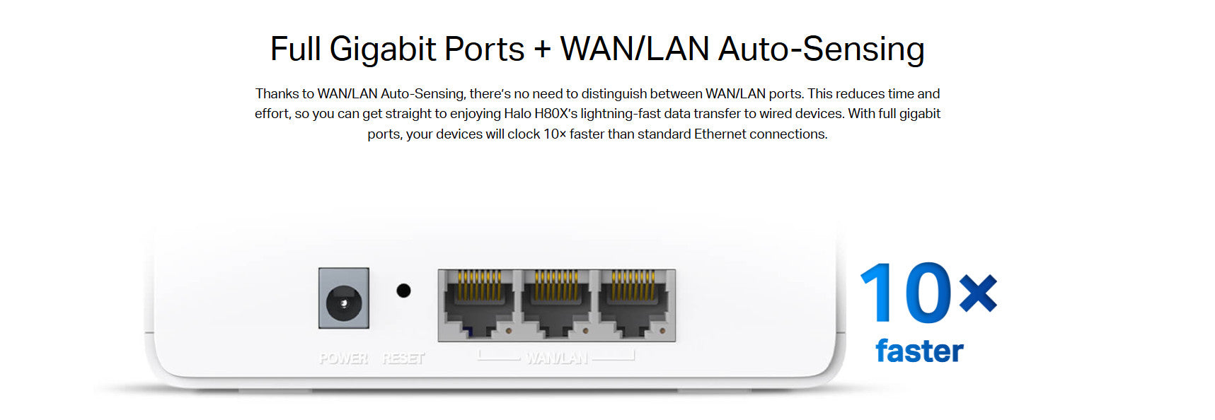 Full Gigabit Ports: 3× Gigabit ports per Halo unit for lightning-fast wired connections. **