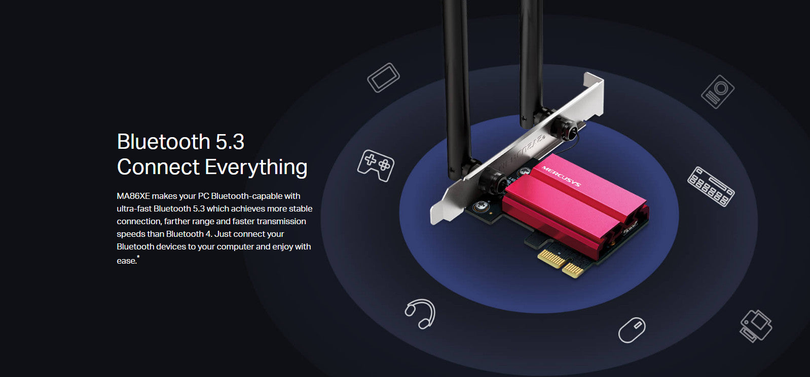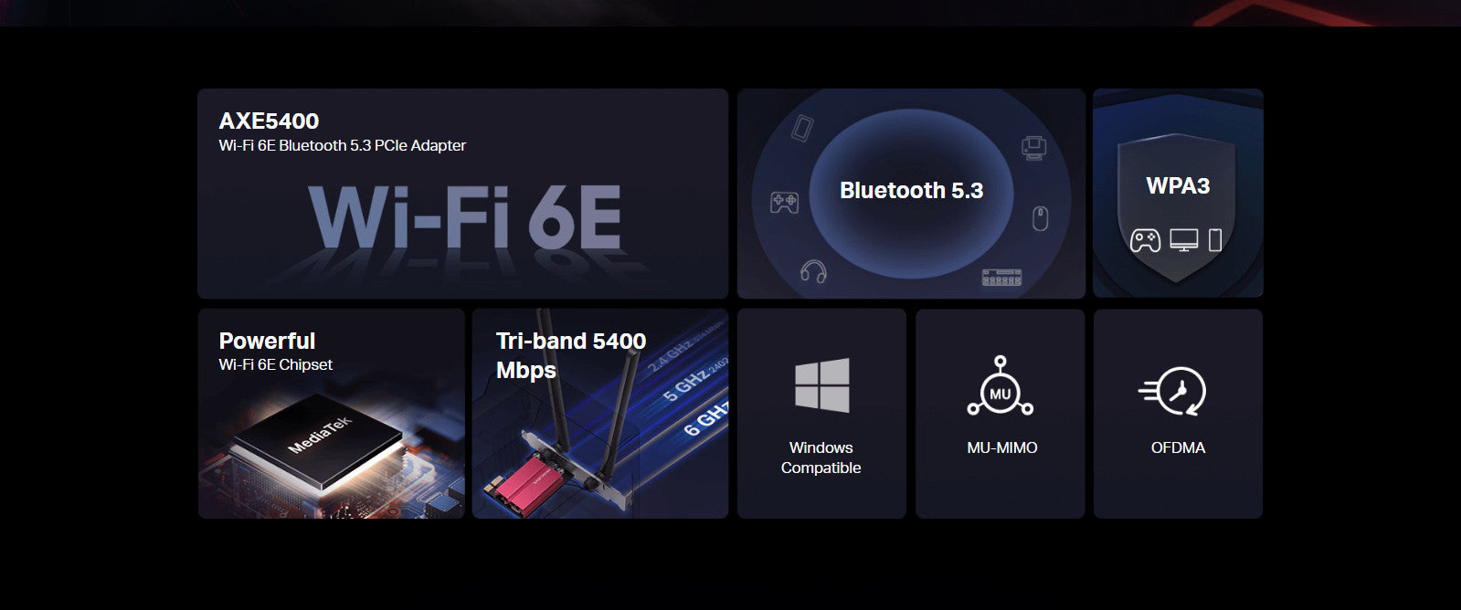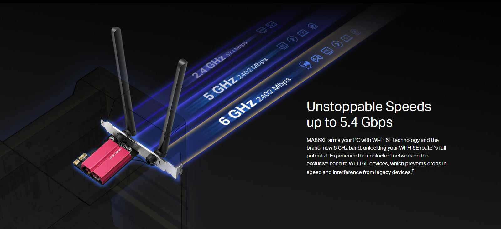 AXE5400 Wi-Fi 6E Bluetooth 5.2 PCIe Adapter, MA86XE