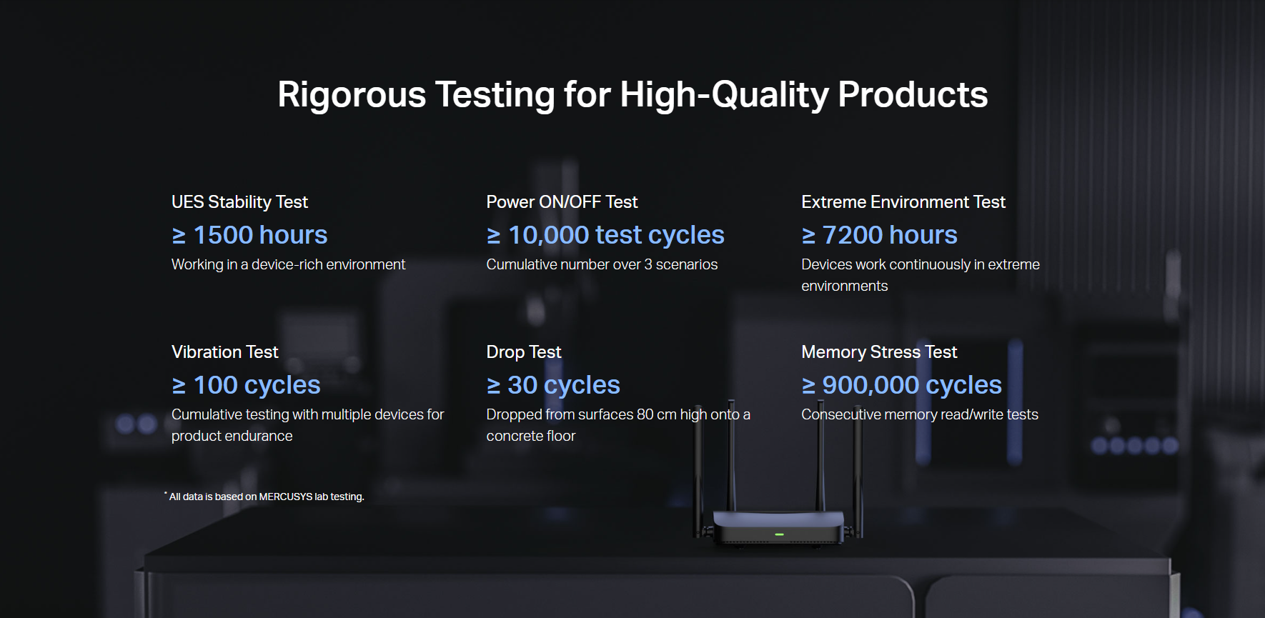 †Maximum wireless signal rates are the physical rates derived from IEEE Standard 802.11 specifications. Up to 150 device connections is based on laboratory test data, which analysed the connections of different devices on the 5 GHz, and 2.4 GHz bands simultaneously. These devices simulated a typical home scenario by running simultaneous applications in the same room that included 4K video, 1080p video, 720p video, file downloading, web browsing, IP cameras, and other loT devices. Actual wireless data throughput, wireless coverage, and connected devices are not guaranteed and will vary as a result of internet service provider factors, network conditions, client limitations, and environmental factors, including building materials, obstacles, volume and density of traffic, and client location.