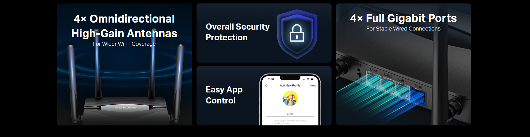- Easy Setup and Use: Network management has never been easier with the MERCUSYS app.