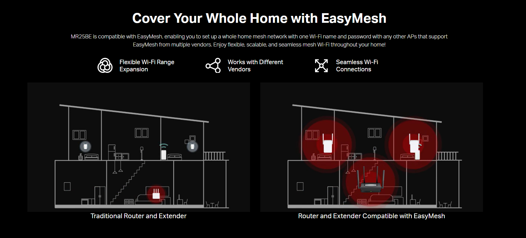 - EasyMesh-Compatible: Works with EasyMesh routers and range extenders to form seamless whole home Mesh Wi-Fi, preventing drops and lag when moving between signals. *