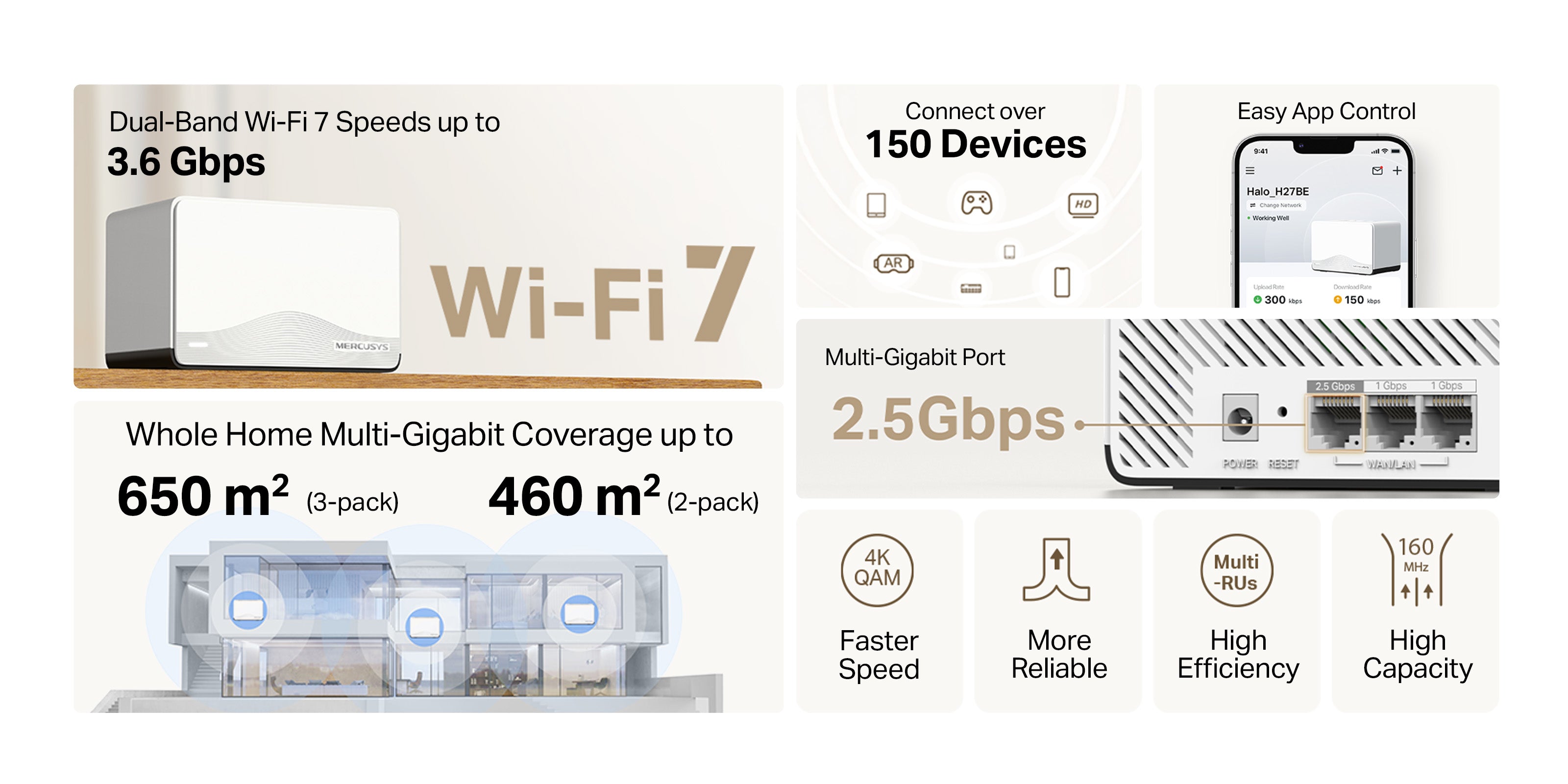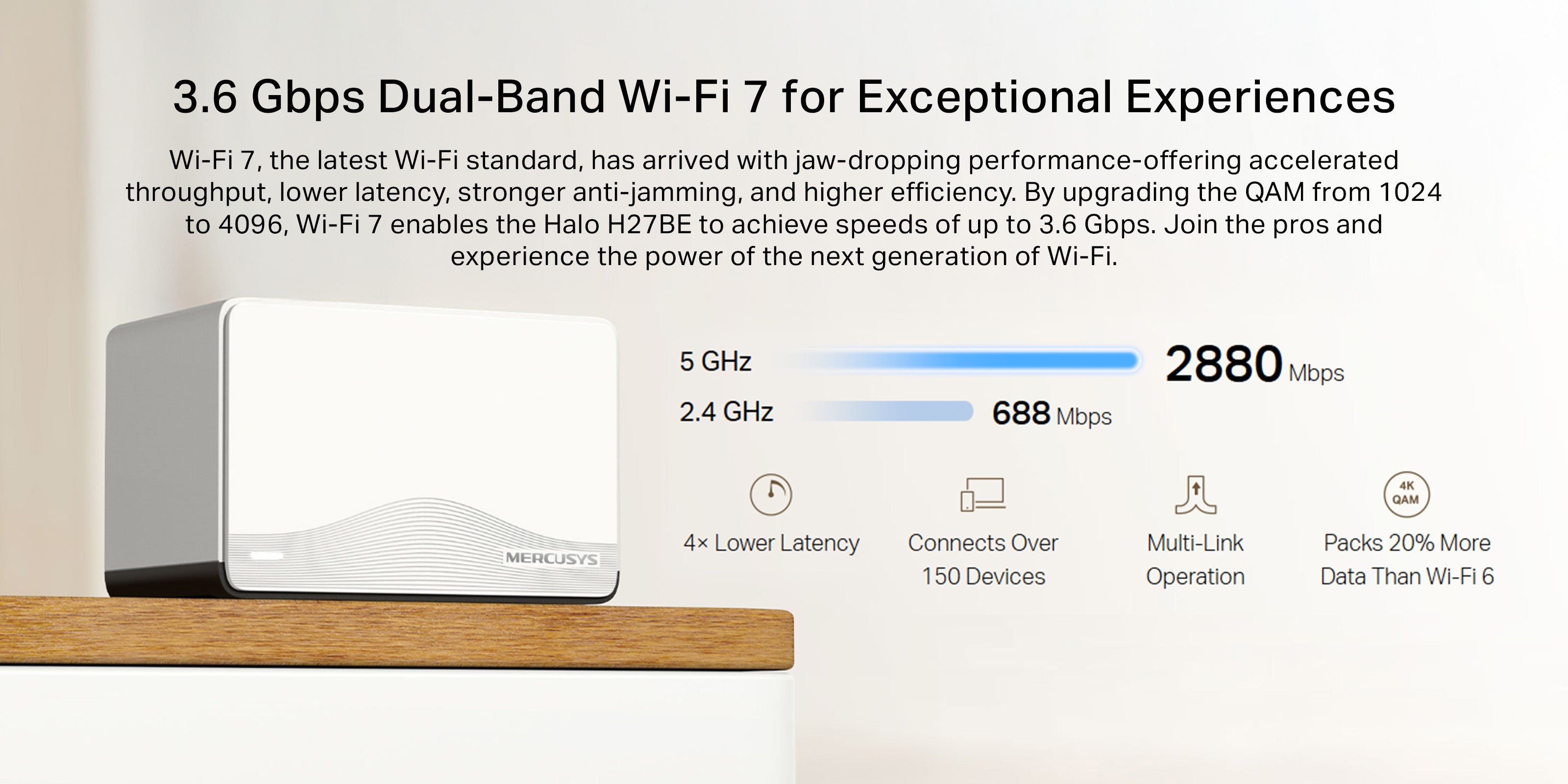 - Newest WiFi 7: Armed with the 4K-QAM, MLO, Multi-RUs, and other features that WiFi 7 offers, your network will arrive with a jaw-dropping performance.△