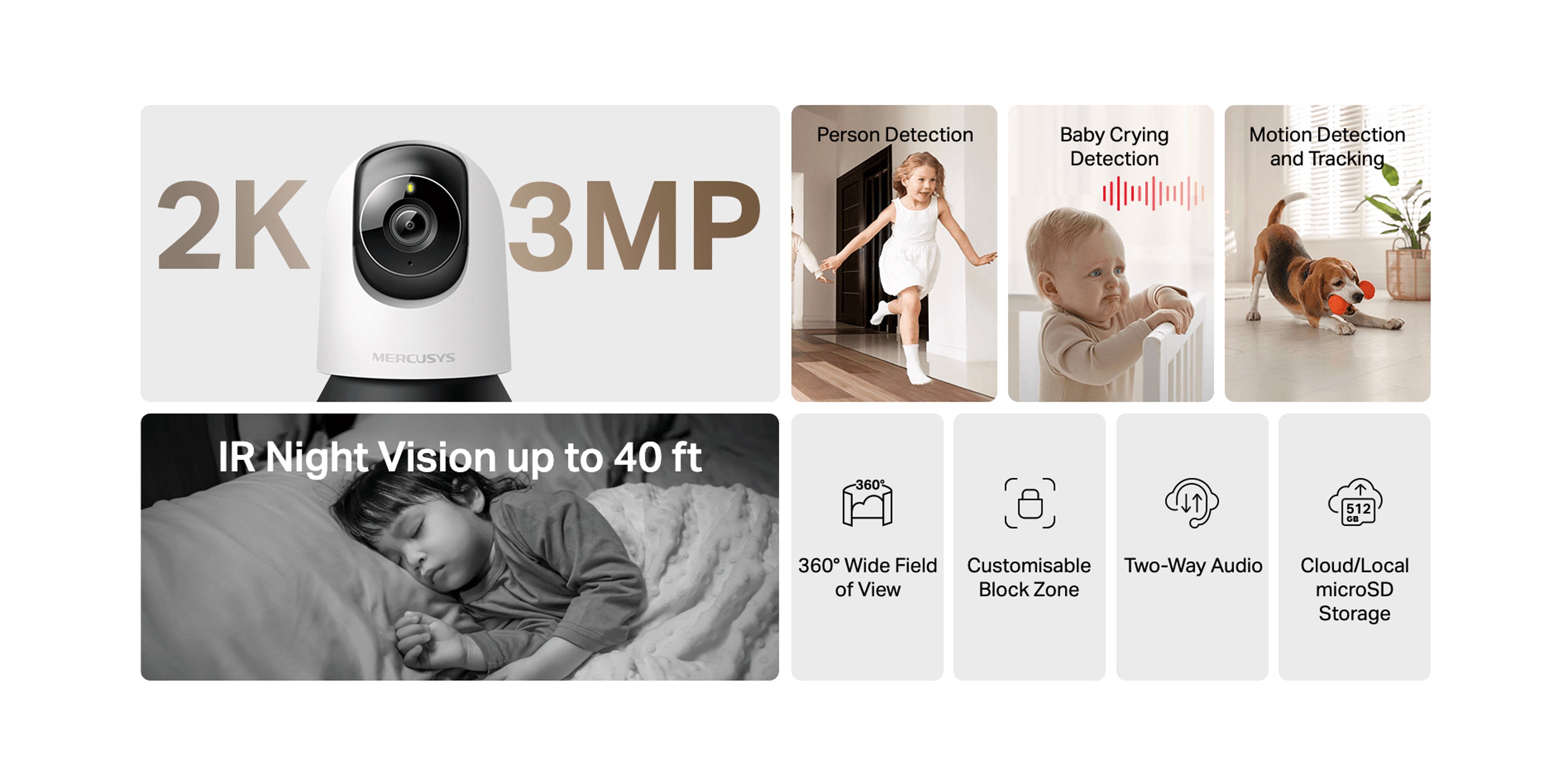 - Smart Detection: Smartly tracks motion 24/7, ensuring subjects stay in view, even in complete darkness with night vision. Receive instant alerts for detected motion, people, or a baby's cries.