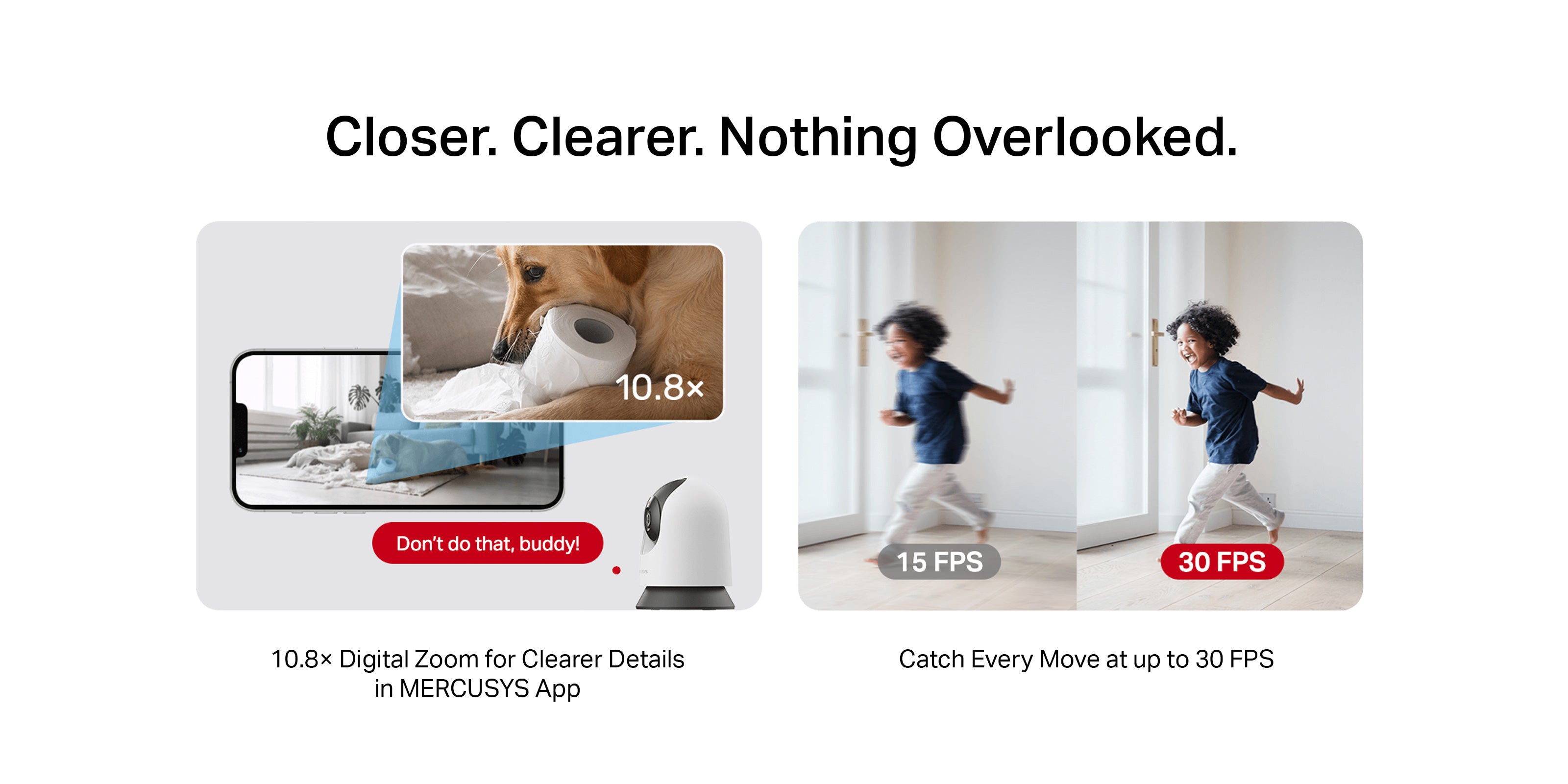 - Two-Way Audio: Hear and respond in real time through a built-in microphone and speaker. Interact with your family and pets at any time.